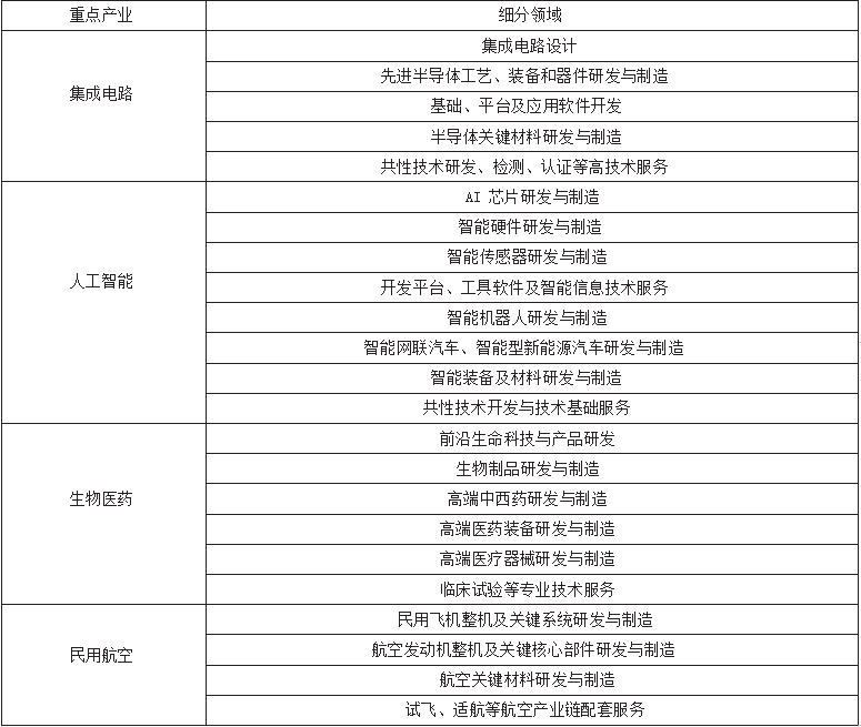 新片区集成电路、人工智能、生物医药、民用航空