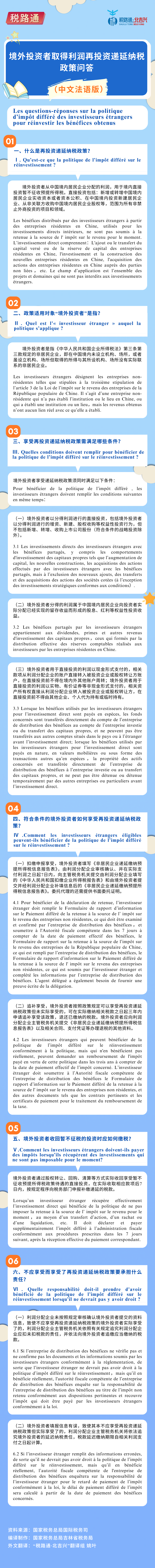 境外投资者取得利润再投资递延纳税政策问答(中法对照版)