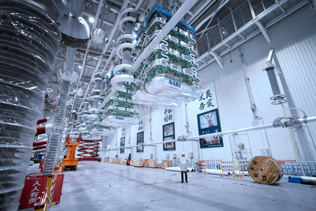 图为南瑞集团员工在渝北±800千伏换流站开展试验工作。