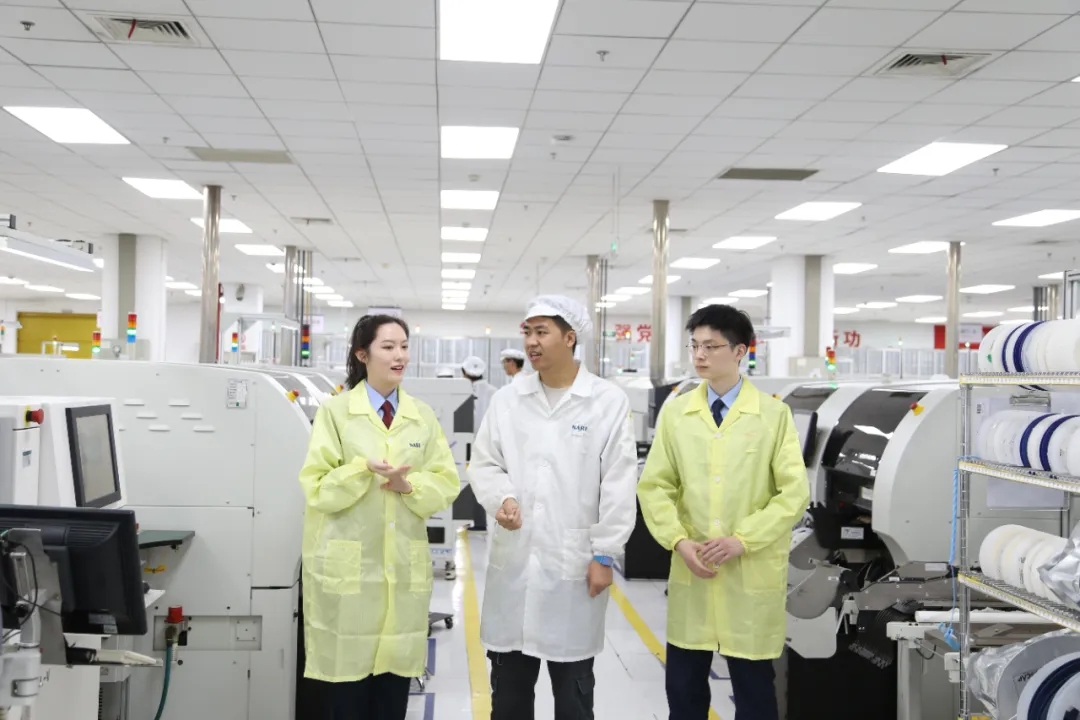 图为国家税务总局江宁经济技术开发区税务局税务人员在南瑞集团智能制造生产区了解生产经营情况。