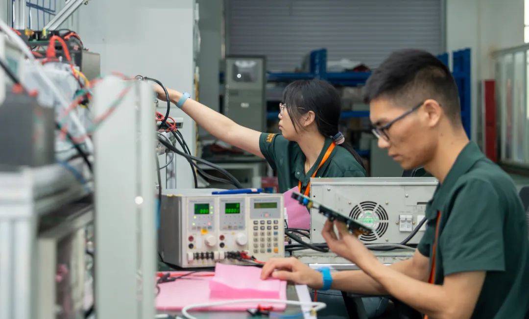 柏宜电气工作人员在成品检验区进行产品出货前检测。