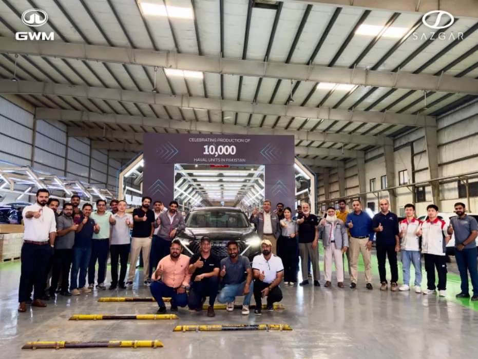图为2024年长城汽车在巴基斯坦KD工厂迎来第一万辆车下线时工作人员合影。