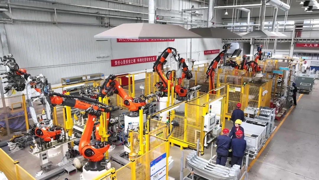 机械臂交替作业,流畅、精准完成焊接、装配与涂胶等工序,金属板材在全自动冲压线上经精密冲压,逐步成型为车身结构件,视觉检测系统自动捕捉关键尺寸……这是来金(天津)汽车零部件有限公司的数字化车间生产现场。