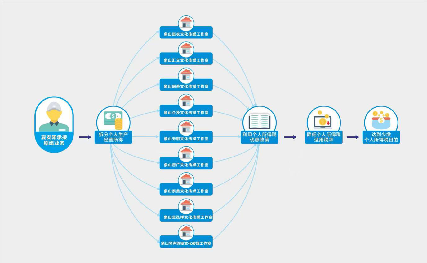 经核查,夏安阳通过控制象山斑衣文化传媒工作室等9户个体工商户拆分收入少缴个人所得税税款345.92万元。