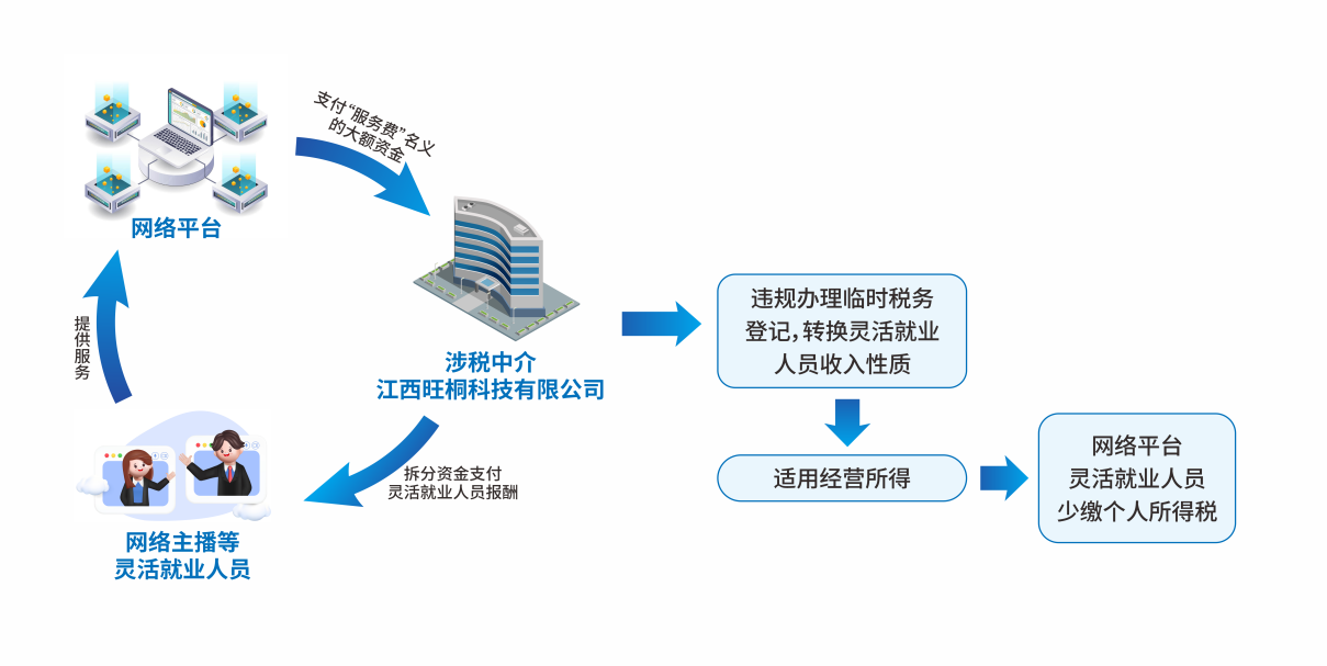前期,国家税务总局赣州市税务局稽查局依法查处涉税中介江西旺桐科技有限公司(以下简称“旺桐科技”)帮助灵活就业人员违规转换收入性质造成其少缴税款案件。经查,2021年至2023年,旺桐科技通过违规办理临时税务登记、代开发票、申报纳税等操作,帮助网络灵活用工平台就业人员在平台所在地登记为个体工商户,将个人劳务报酬所得,违规转换为个体工商户经营所得,造成23名灵活就业人员少缴个人所得税共计220.80万元。2025年9月,税务部门根据《中华人民共和国税收征收管理法实施细则》第九十八条,对旺桐科技作出处以纳税人少缴税款0.5倍罚款共计110.40万元的处罚决定;根据涉税专业服务管理相关规定,对其采取列入涉税服务失信主体等措施。同时,案件涉及的少缴税款人员已由相关地区税务部门另案查处。