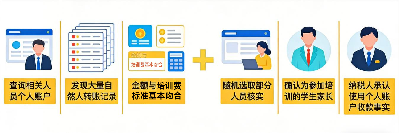 立案后,检查人员依法对正心教育经营场所进行现场检查,调取其账簿资料及招生、收款等内部记录。为进一步核实真实收入情况,检查人员依法调取了该公司对公账户及法定代表人、财务负责人等个人账户的资金流水,并申请查询第三方支付平台交易记录。