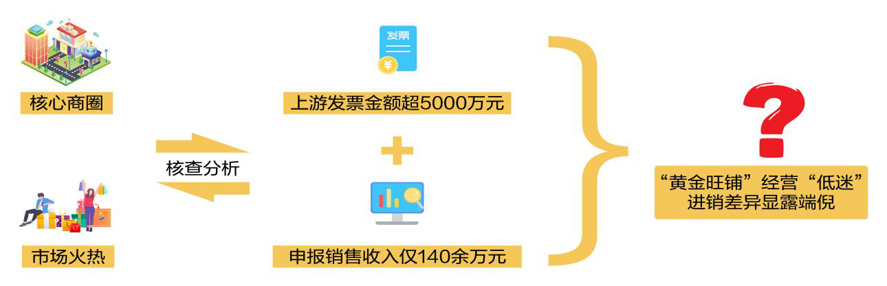 税务人员通过税收大数据进一步分析,发现2023年6月至2025年5月期间,鑫福珠宝共取得上游开具的“金银珠宝首饰”等发票金额合计5210.88万元,而在此期间其申报销售收入只有142.87万元。
