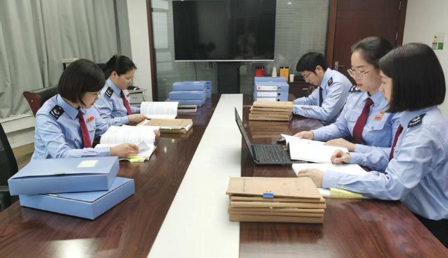 国家税务总局安徽省税务局党委纪检组开展案件质量评查,纪检干部正在审核案卷