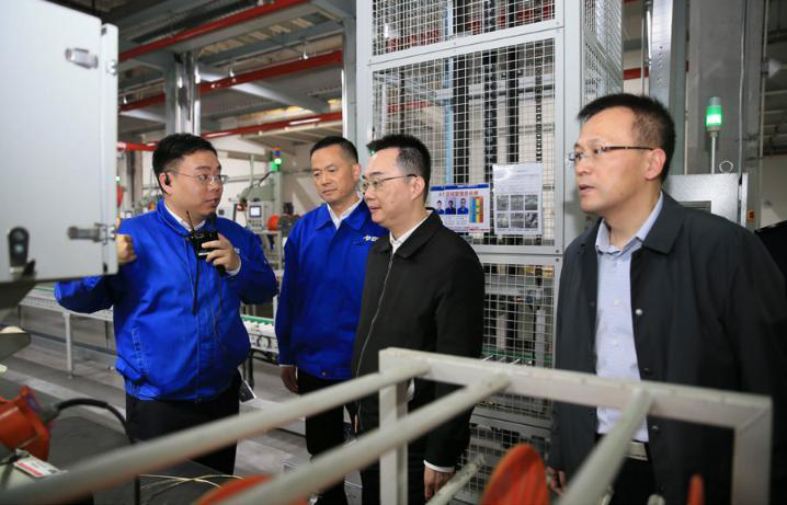 国家税务总局江苏省税务局党委委员、纪检组组长吴毓壮(右二)在某制造业企业调研,察实情、求实效