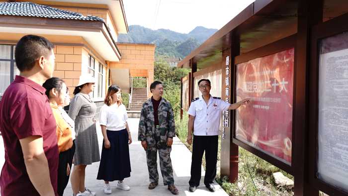 万厚林(右1)向村民宣讲党的二十大精神,以党建引领推动乡村振兴。