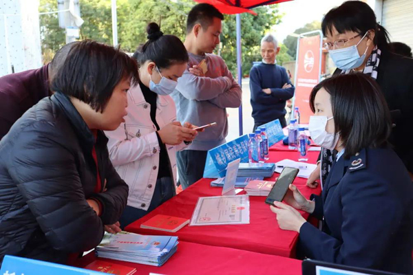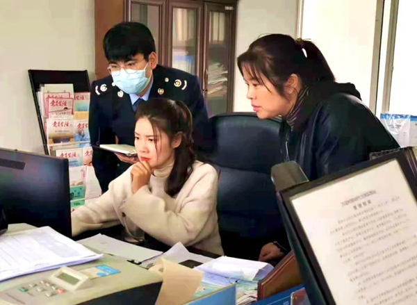 图为枝江市税务部门建立网格化服务体系,上门为缴费人解难题。