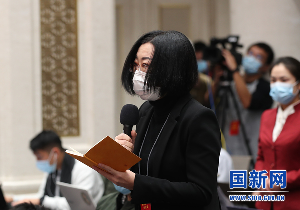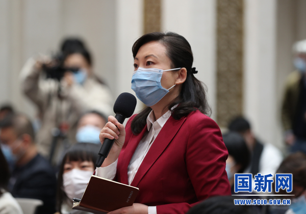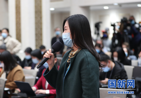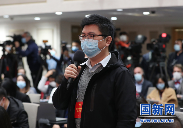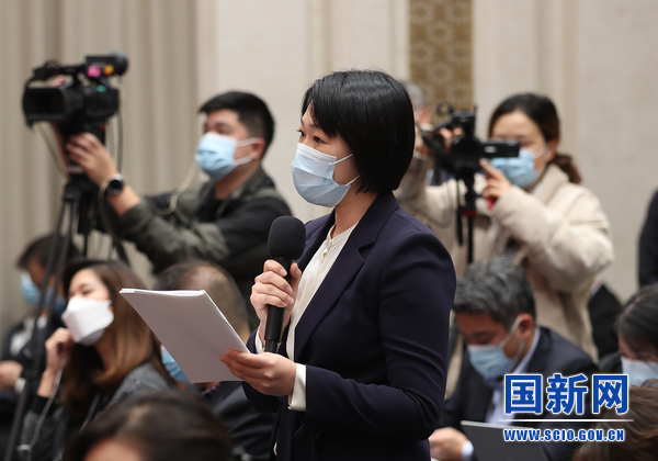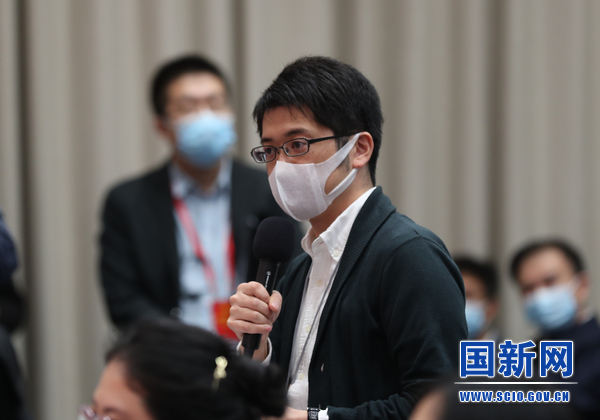 中央广播电视总台央视记者提问(赵一帆 摄)
