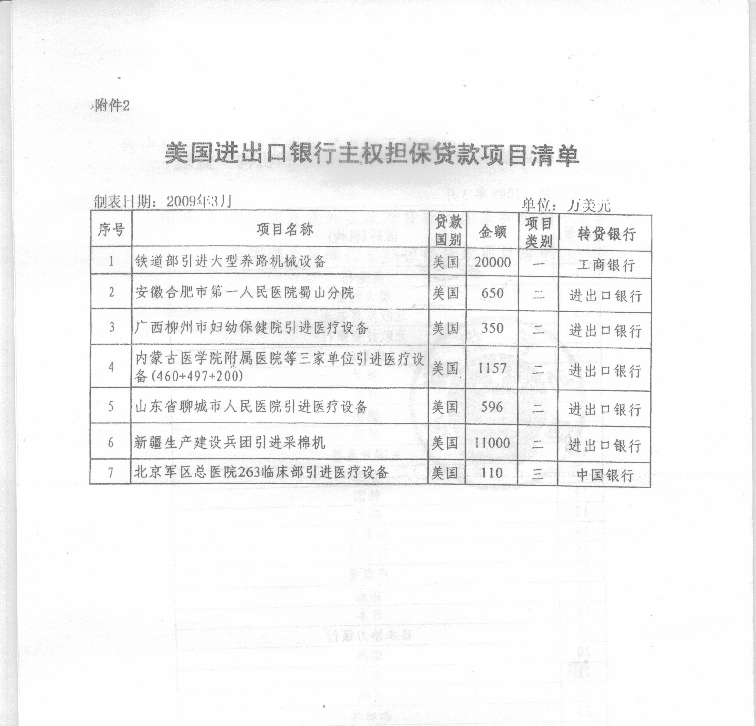 二、由于美国进出口银行主权担保贷款项目管理比较特殊,为便于各地执行,现将截止目前已核准的美国进出口银行主权担保贷款项目清单(见附件2)予以明确。