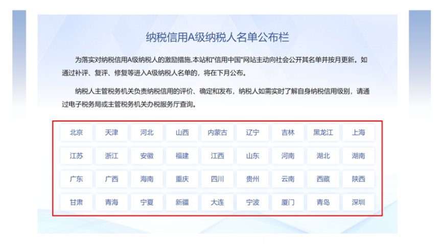 答:根据2025年7月1日新出台的《纳税缴费信用管理办法》规定,对纳税缴费信用评价为A级的经营主体,税务机关给予主动向社会公布A级名单的激励措施,您可以在国家税务总局网站进行查询,具体操作如下: