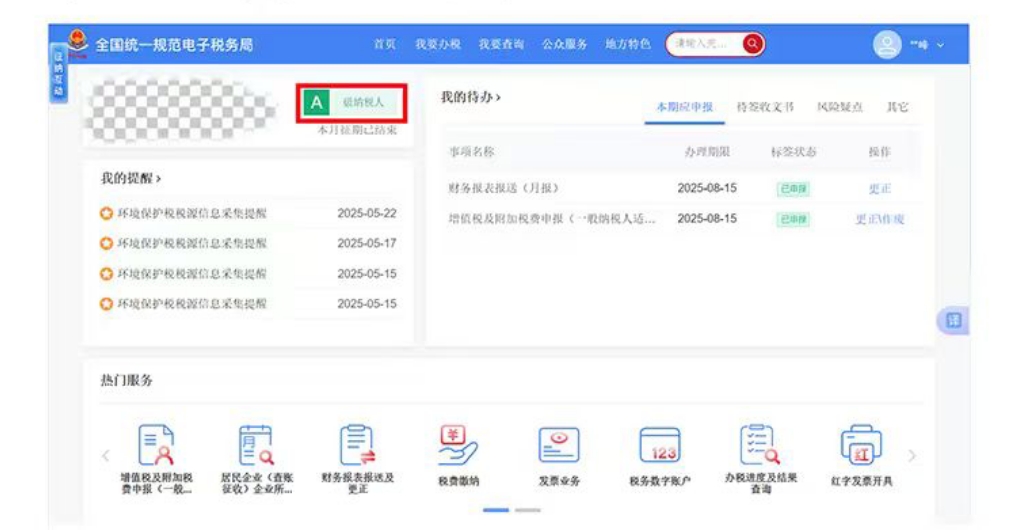 1.登录电子税务局,在企业名称旁可以看到当前自身纳税缴费信用评价结果。