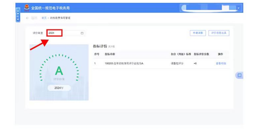 4.输入纳税人识别号(统一社会信用代码)、纳税人名称、评价年度等信息,点击提交。