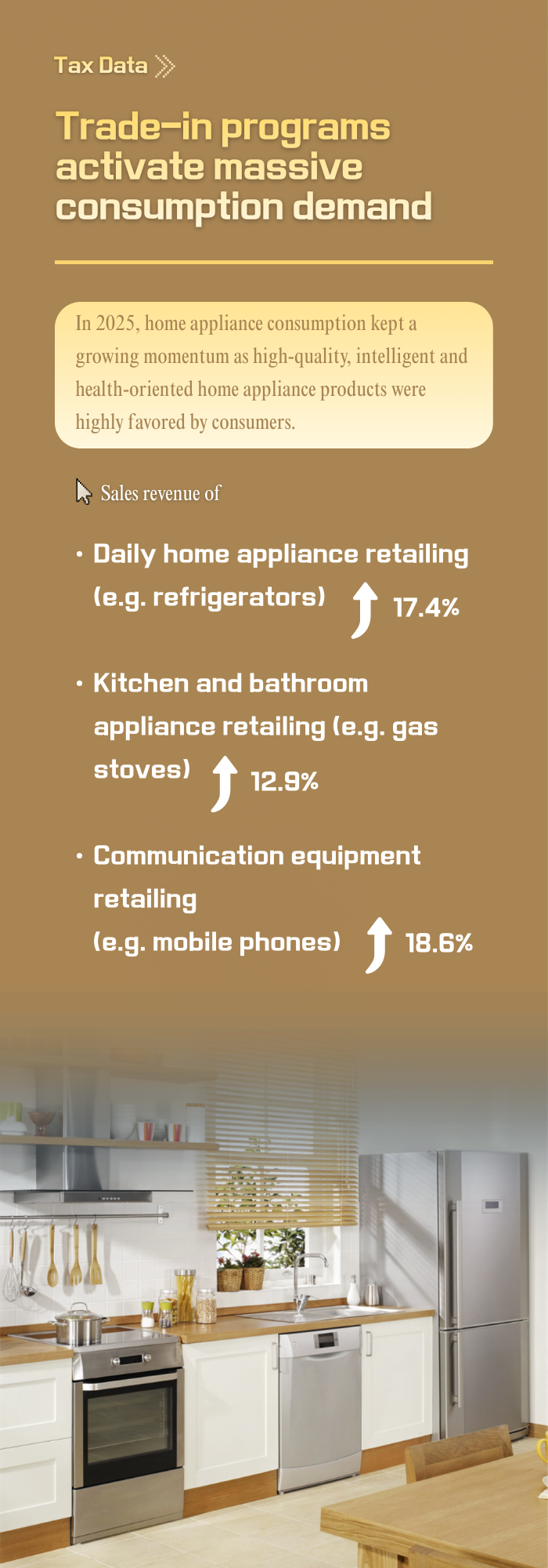 In 2025, China's consumer market, empowered by a series of targeted policies, is highlighted in several aspects. Consumer demand was strongly unleashed for home appliances, mobile phones, new energy vehicles and other products. New models and scenarios of consumption are innovated and integrated in the sectors of culture and tourism, digital consumption, sports and health. The aged community showed considerable consumption potential. Inbound consumption by overseas tourists gained strong momentum.